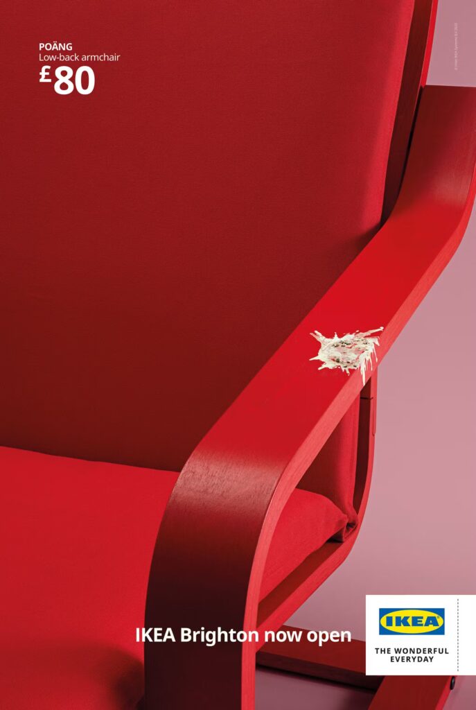 IKEA şehir içi konsept mağazacılık anlayışını dünyada yaymaya devam ediyor. Daha küçük metrekarelerde insanların beğendiği ürünü aldığı ya da sonrası için sipariş verdiği kompakt mağazaların yenisi İngiltere’nin sahil kasabası Brighton’da açılıyor. Çeşitli tasarım deneyimleriyle açılan mağaza dikkat bir reklam kampanyasıyla hedef kitlesine seslendi. İngiltere’nin güneyindeki şehrin neredeyse isimsiz maskotu haline gelen ‘martılar’ IKEA’nın açılış duyurusuna da ilham olmuş. Mother Creative imzasını taşıyan ‘IKEA Brighton New Open’ reklam kampanyasında ikonik ürünlere martı dışkısı eklemlenmiş. Şehrin hafızasına gönderme yapan IKEA, kampanyasında tüketicisiyle aitlik hissini esprili bir dille kurmak istemiş.